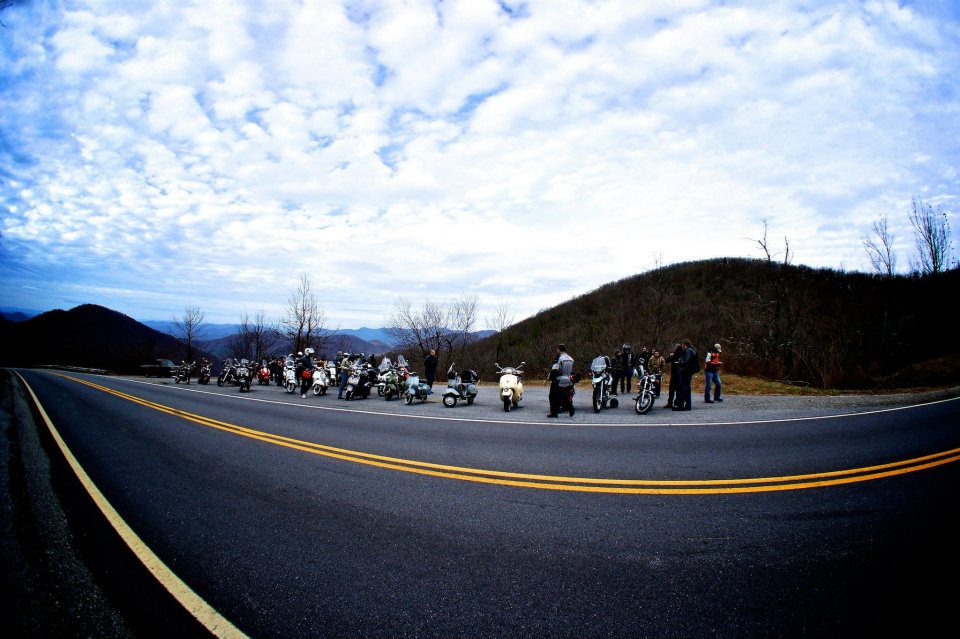 All the local riders around me met at the rendezvous point, next to Vespa Marietta. I'm the one 2nd from the right, in the greyish-blue jacket. Maddie didn't come with for this ride, she would have been too cold.