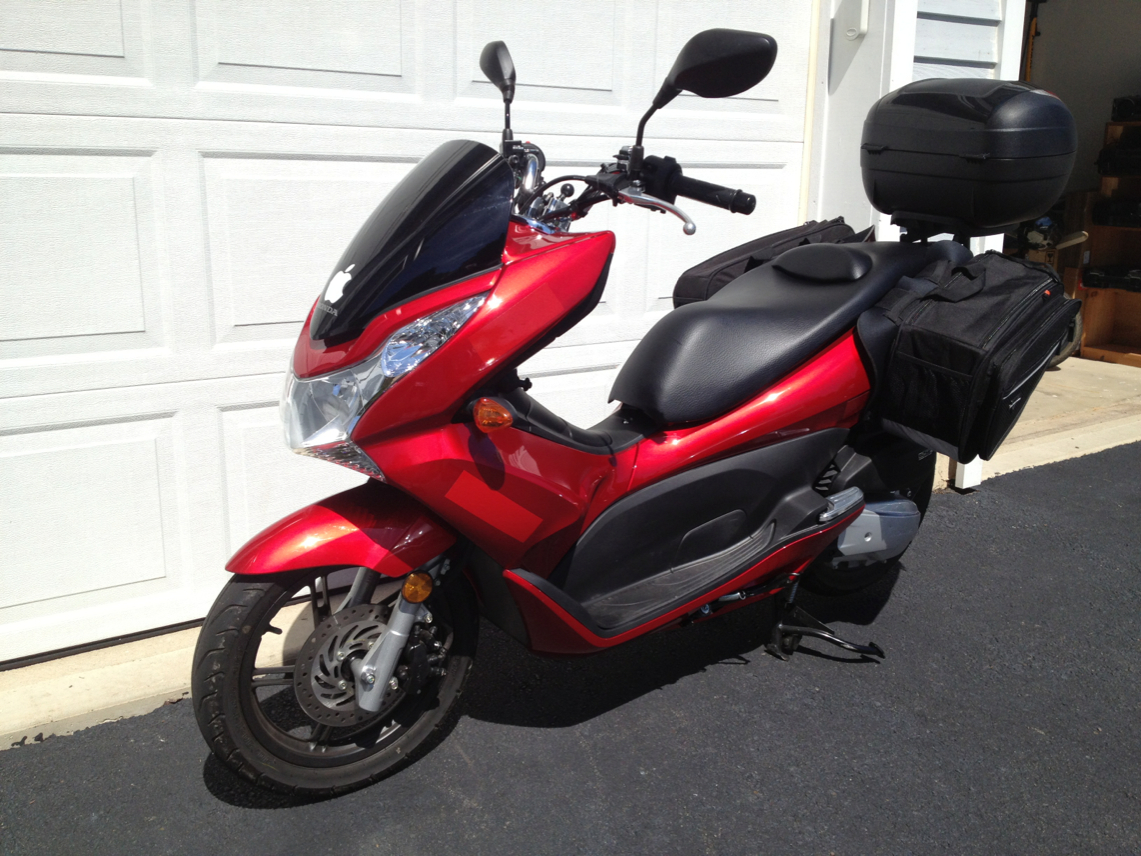 Although I haven't actually ridden with the side bags yet, one issue I've found already is that they make putting the scoot on the center stand much more difficult, as they block where I normally grab onto the body to rock it backwards. Not impossible, but not graceful either. The wide velcro tabs go under the seat (which never seems to close properly anyway), and the smaller clips go above the tail light and above the wheel to keep the bags on the frame. They are wide, and hang down at a bit of an angle even when empty, but they come with a good thick heat shield that looks like it will also keep the side panels from getting scratched. The bag straighteners have a really good fit, too. Once I make a real grocery run, I'll be sure to update the post. Meanwhile, I did take them off ahead of my next ride, as there's really no need for them unless I'm actually carrying stuff.