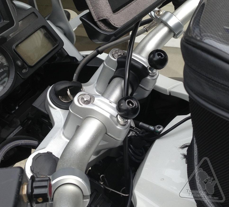 Yes, but you need to angle the clamp close to parallel to the forks so it clears.Rickjds wrote:Can this clamp fit between the two handle bar bolts in the center?chicaboo wrote:The u-bolt base comes with a rubber thing to protect your bars, but I prefer the clamp for quick removal - RAM-HOL-UN7-400U.