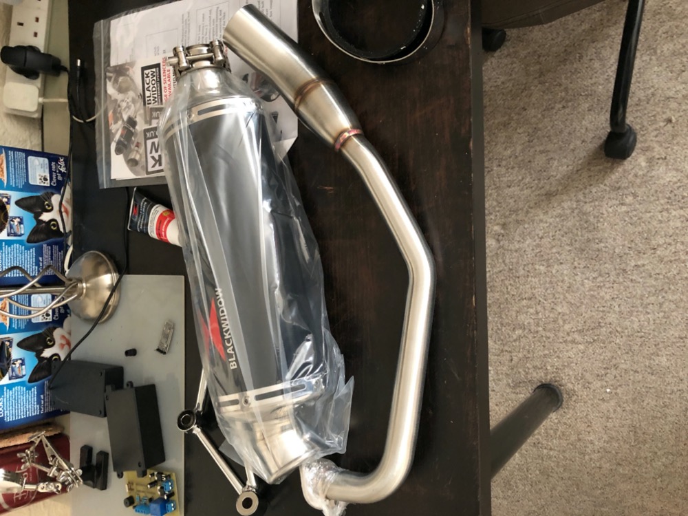 I first removed the front (Headlight) frame that was completely bent and unusable and replaced it. I took the fork and yoke out after I took off the steering and put the new head sport bearings in with grease and placed the refurbed fork and yoke in there. After that I fitted a second hand headlight with all the plastic in tact and screw holes and used bolts again to fasten it the way its supposed to. After this I cut the kill switch wire from the side stand and made an electronic bypass and put a new wire in to go under the seat and wired new light next to the alarm light inside the cockpit. The reason for the last bit is that we have a serious problem with bike theft in the UK including armed bike thefts and robberies so I decided to make a little IOT kill switch project out of it and already wired the bike so I can install my own tracking device later under the seat when done. Anyway back to the bike repair. I noticed that the plastic on the right foot rest did not want to lineup as supposed to and noticed that the frame was bent and damaged so I ordered that in and replaced that as well. For the mechanical part I fitted the clutch and variator drive belt and new clutch bell. I did so many things basically that my whole explanation becomes a bit of a jumping from one thing to the next - a jibber jabber episode, but the bottom line is that all broken parts have been fixed. Parts have been improved where possible and service has been done where necessary...And I almost forgot, I found the exhaust looking a bit like a rusty pipe in comparison to all the work I had done and how clean the bike looked so I upgraded that as well. Let me just post some picture and see what you guys think. The last pictures are recent. I'm waiting for plastic to finish the bike off. Pat