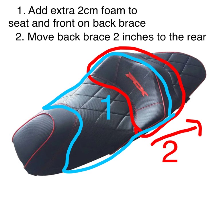 Also note, I think the seat feels a little wider, so adding extra padding to the sides of the front seat may have not been necessary. It feels good to me and now I can ride longer without my behind hurting so much from not enough padding.