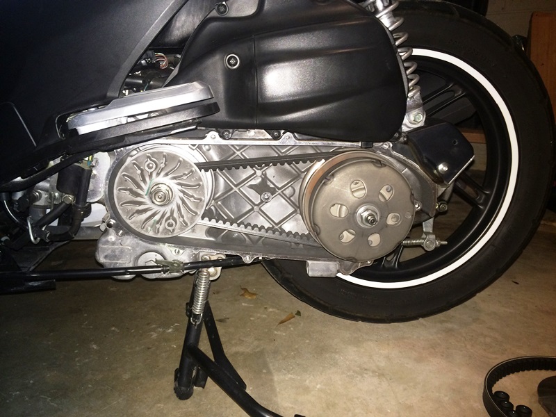 Take the covers off the variators, and put the stock weights in the aftermarket variator. Slide it back in: