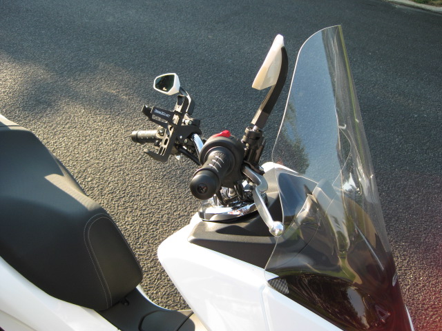 When you level your handle bar grips and brake levers I will be curious to see how far forward you can go without tagging your aftermarket windscreen in the steering column parking position.