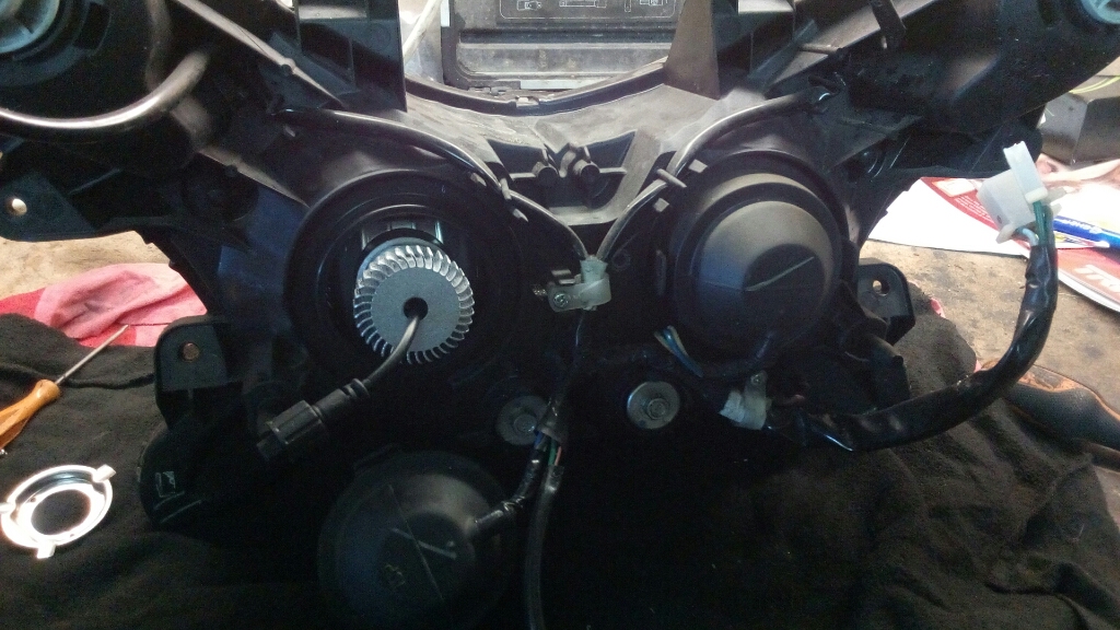 Did you have to split the light assembly to do the upgrade? I am considering working on mine over the winter. Changing the main bulbs shouldn't be difficult (I have some HS5 bulbs I want to install there), but the top and bottom light sockets are empty. Those are the ones I am considering doing something with.